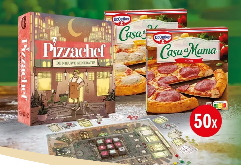 Het prijzenpakket bestaat uit 2 Casa di Mama pizza’s naar keuze en het vernieuwde Pizzachef bordspel. Alle benodigheden voor een gezellige spelletjesavond.